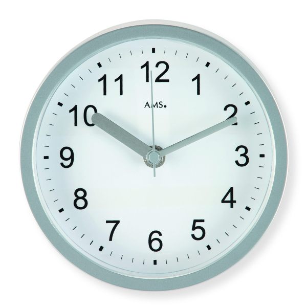 • Klok 5926 is een waterdichte badkamerklok met een zilver gekleurde kunststof rand en een mineraalglas voor de wijzerplaat.