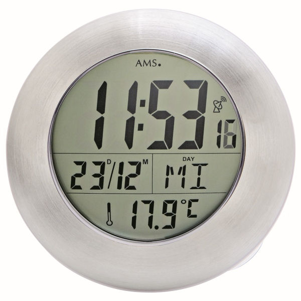 • Klok 5929 is een waterdichte digitale badkamerklok met een aluminium rand, te gebruiken als wand- en tafelklok.