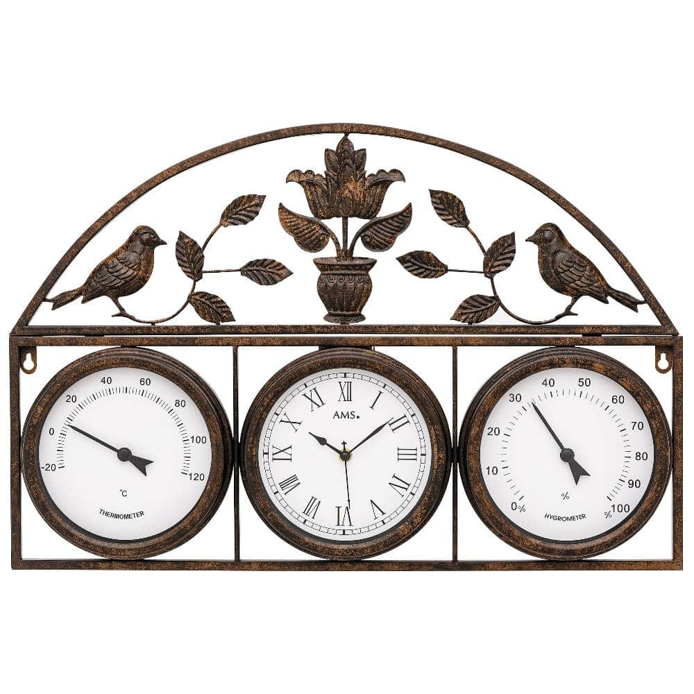 • Klok 5967 is een buitenklok wandklok van metaal in een antiek stijl uitvoering met vogel en bloemen design.