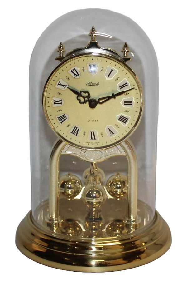 • Klok 85072-002300 is een jaarpendule stolpklok in een messing gekleurde uitvoering met een glazen stolp.