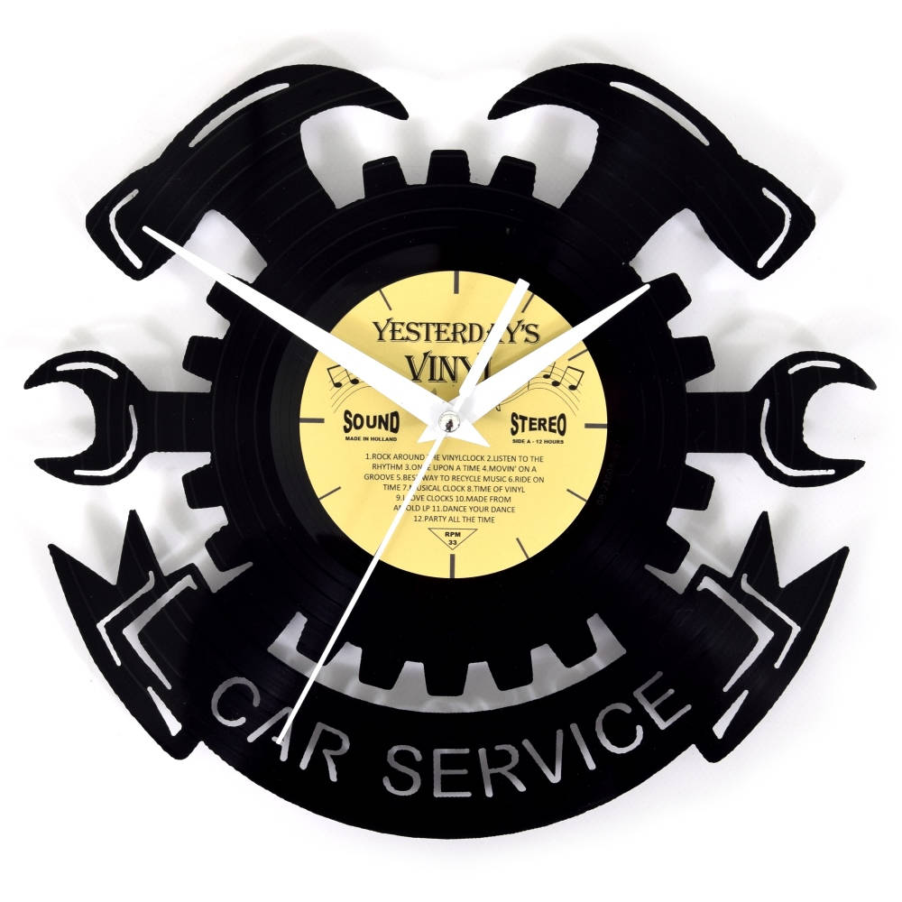 Klok 601-3239 is een LP klok met uniek uitgefreesd car service design. Dit herkenbare ontwerp is voor iedere garage en autosleutelaar de blikvanger voor aan de wand. In de kantine of werkplaats van een autogarage is het naast een mooie decoratie ook erg functioneel om gemakkelijk de tijd in de gaten te houden.