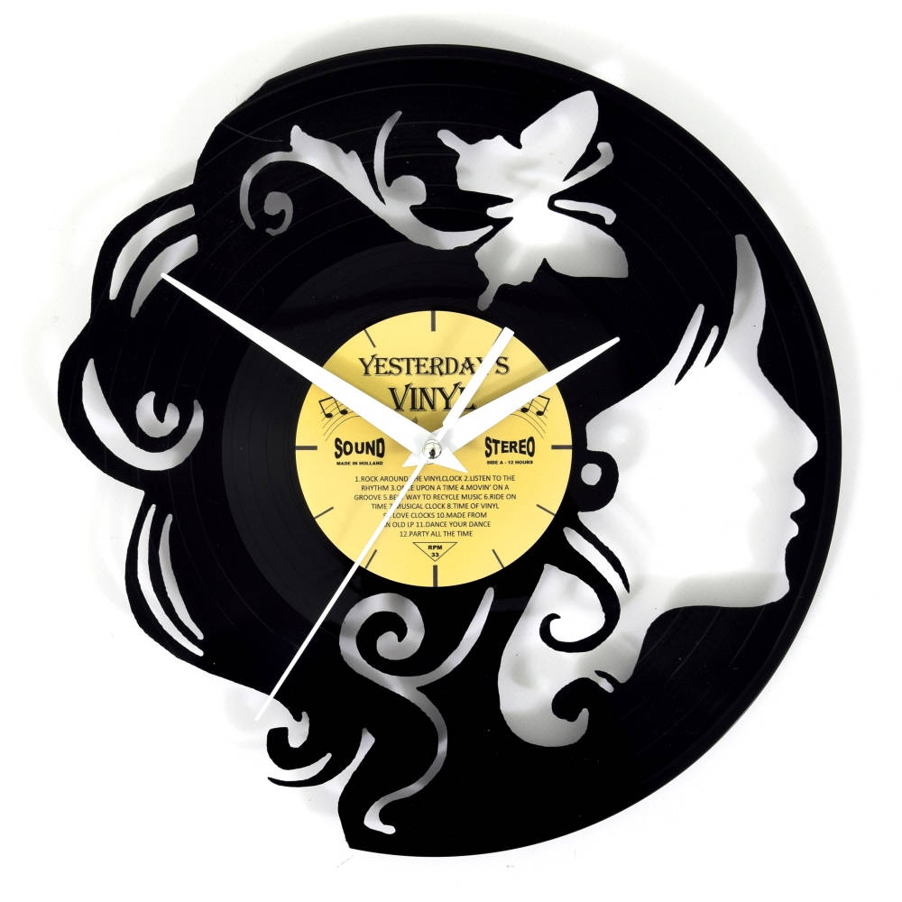 Klok 601-3208 is een LP klok met uniek uitgefreesd design van een meisje met een vlinder. Dit ontwerp is een prachtige toevoeging voor aan de wand van ieder interieur en kan daarnaast mooie herinneringen naar boven halen.