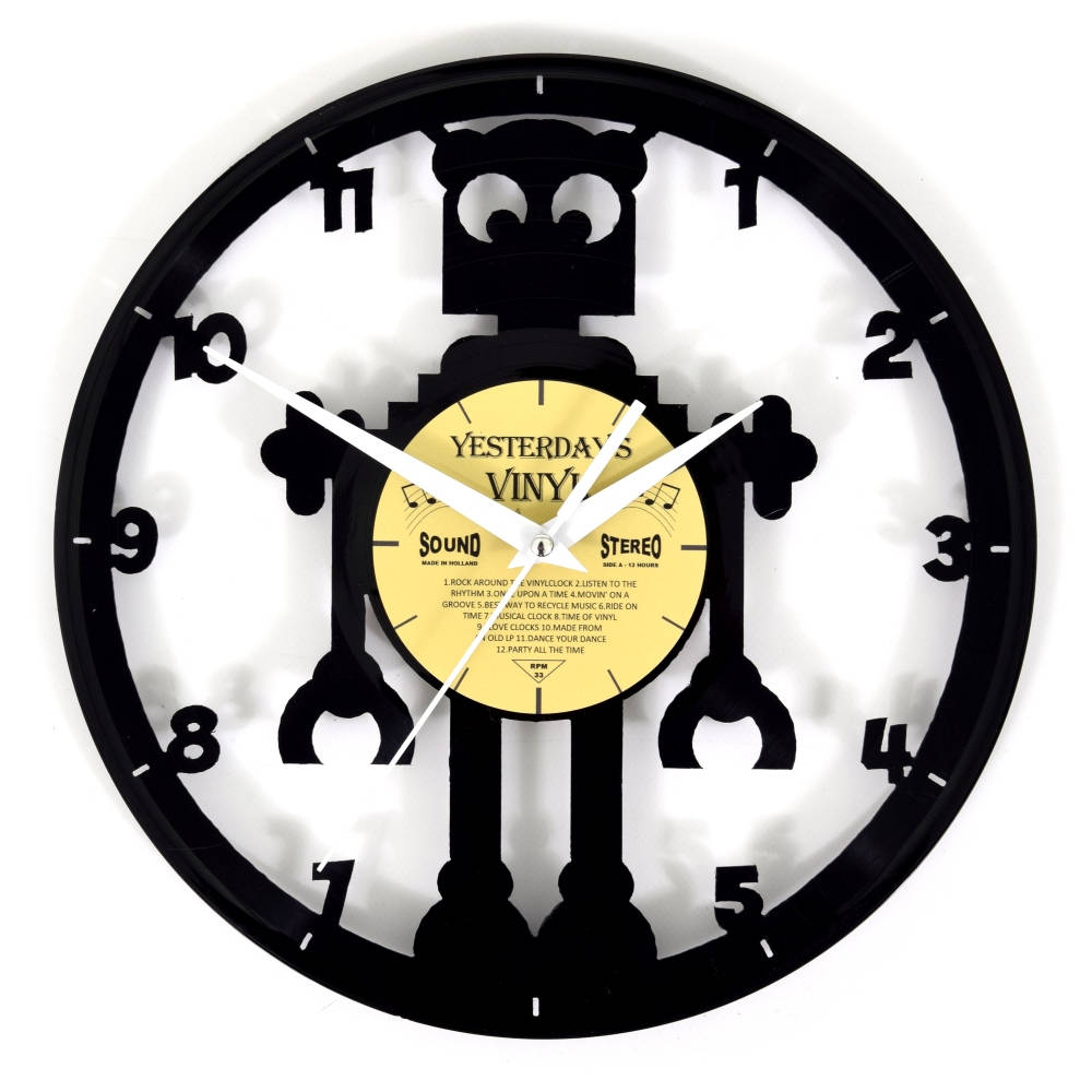 Klok 601-3205 is een LP klok met uniek uitgefreesd design van een robot met cijfers. Dit ontwerp doet bij velen vooral denken aan de spannende verhalen over robots in boeken en films. Deze klok is daarnaast ook erg leuk als kinderklok voor in een jongenskamer.