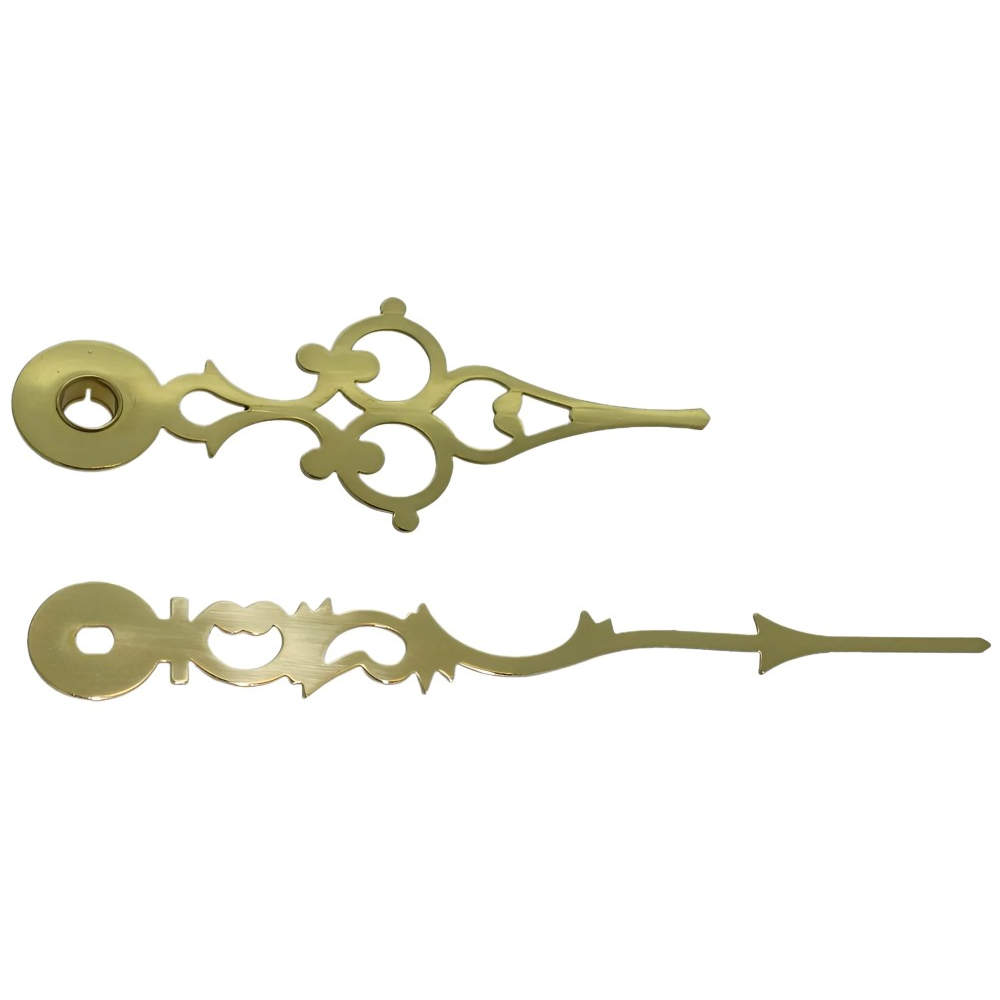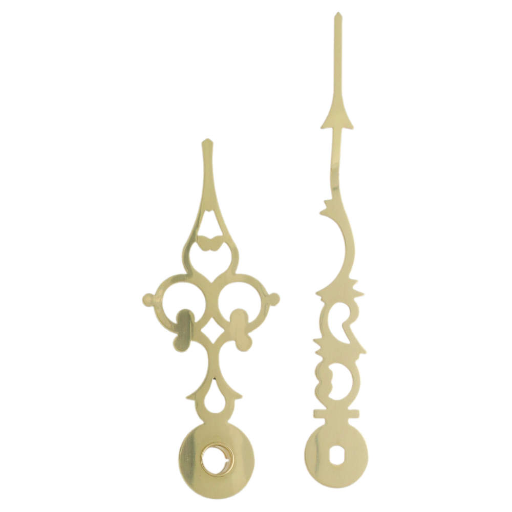 • Glanzend goudkleurige wijzerset van metaal.