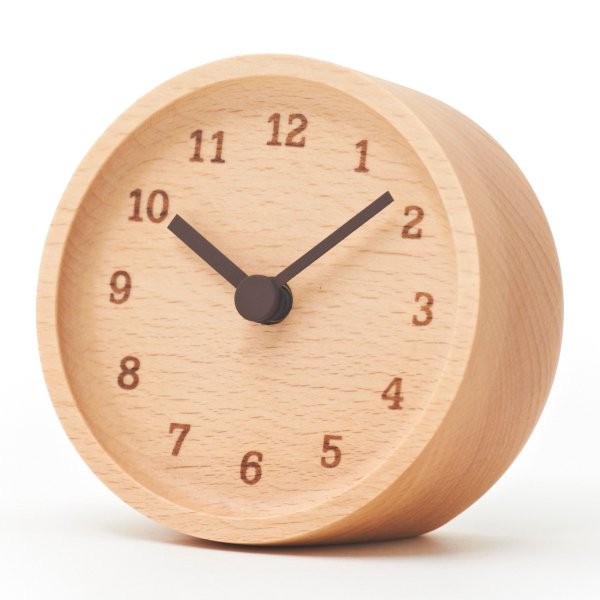 • Klok LC12-05BN is een beukenhouten design tafelklok met bruine wijzers en bruine opgedrukte cijfers.