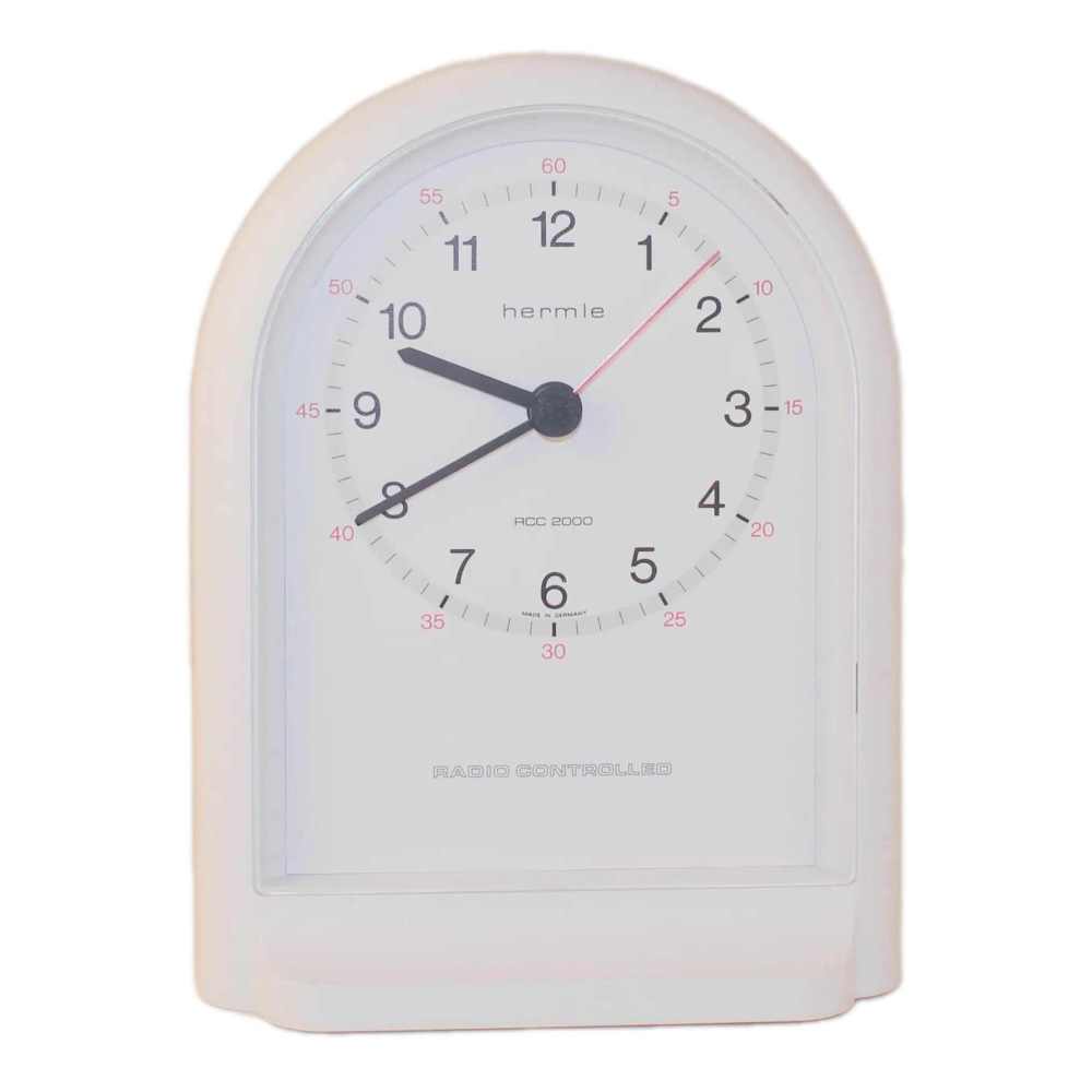 • Klok 22560-000800 is een tafelklok met een mat witte kunststof behuizing en plexiglas voor de witte wijzerplaat.