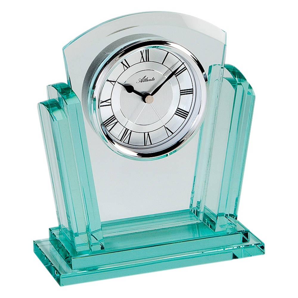 • Klok 3084A is een glazen tafelklok met een voet en zijkanten die uit twee lagen glas bestaan.