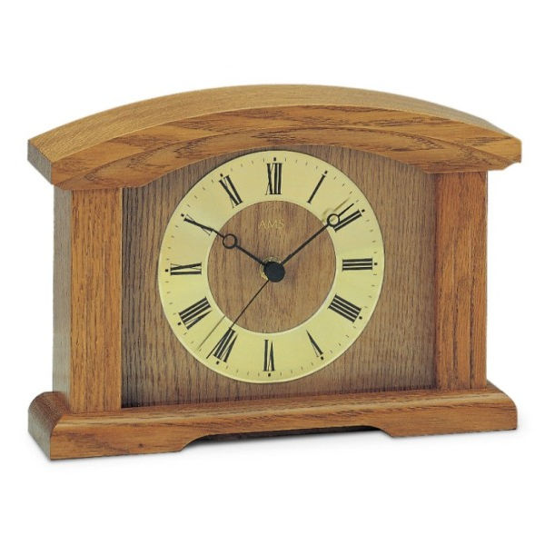 • Klok 5138-4 is een tafelklok van massief midden eikenhout, de cijferrand is messing gekleurd.