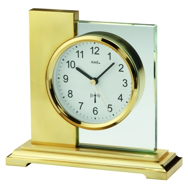 • Klok 5141 is een tafelklok van gematteerd en glanzend messing gekleurd metaal, het mineraalglas is geslepen.