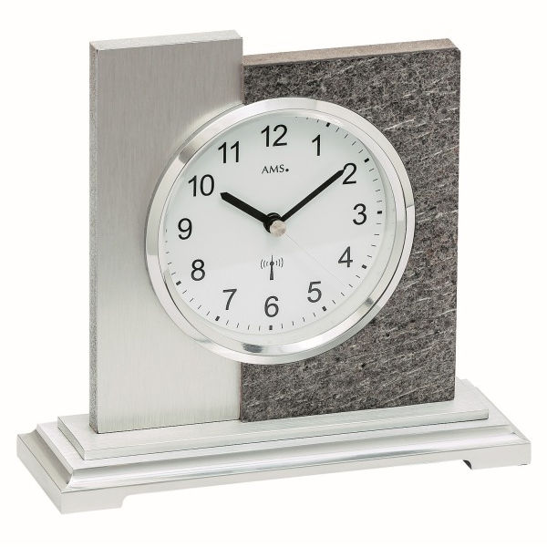 • Klok 5150 is een tafelklok met een sokkel van glanzend en gematteerd metaal.