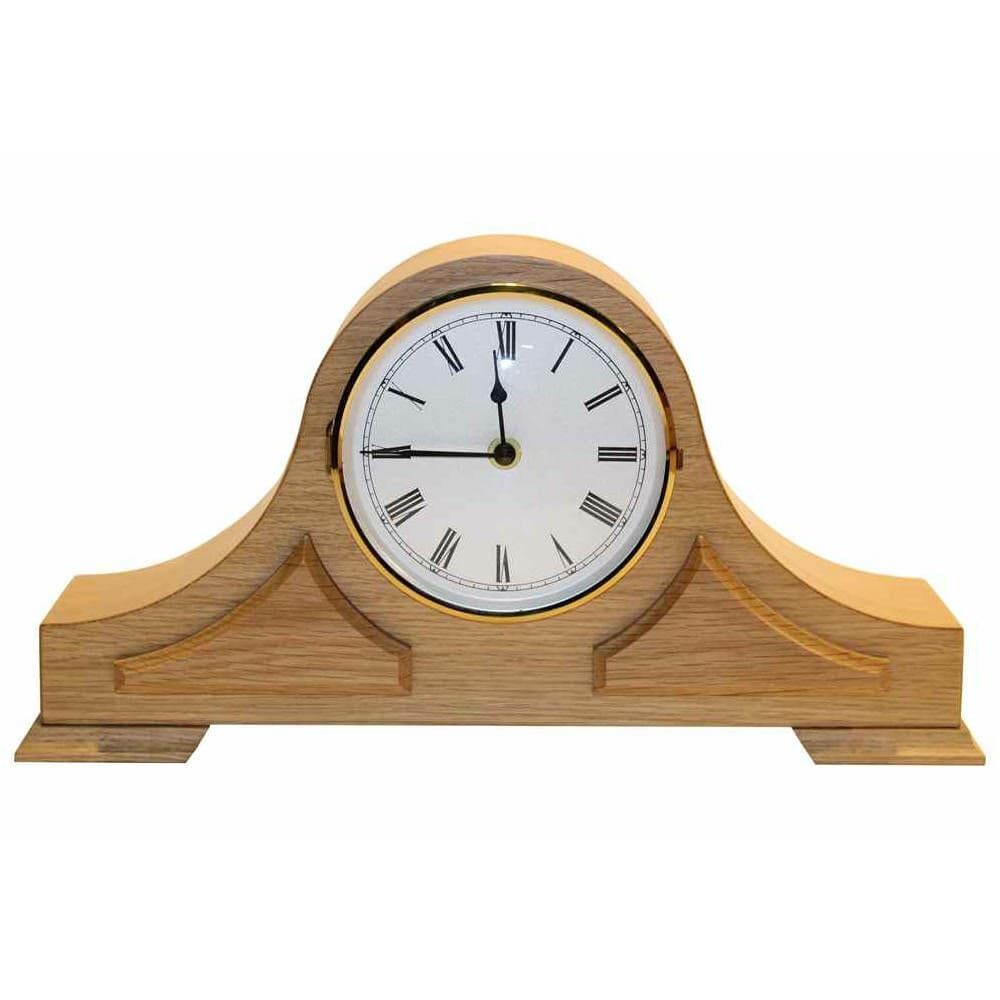 • Klok TQ10LE is een tafelklok in een licht eikenhouten uitvoering met een messing rand om de wijzerplaat, zwarte metalen wijzers en een gebold mineraalglas.