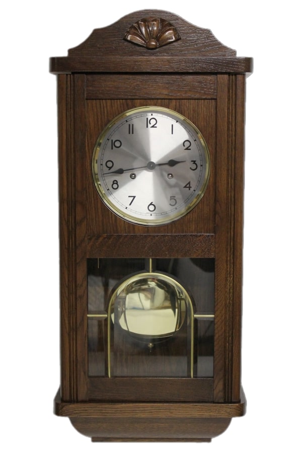 • Klok 19-202-4 is een regulateur wandklok in een donker eikenhouten uitvoering.