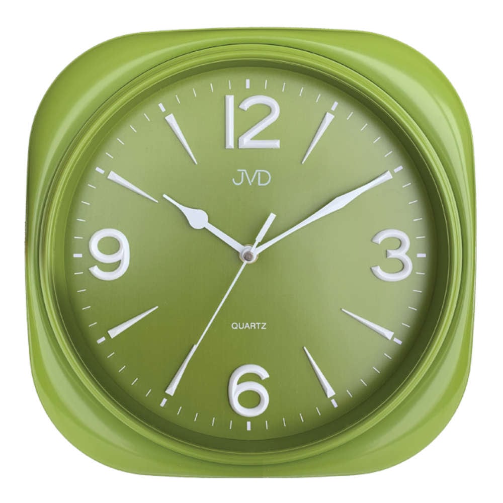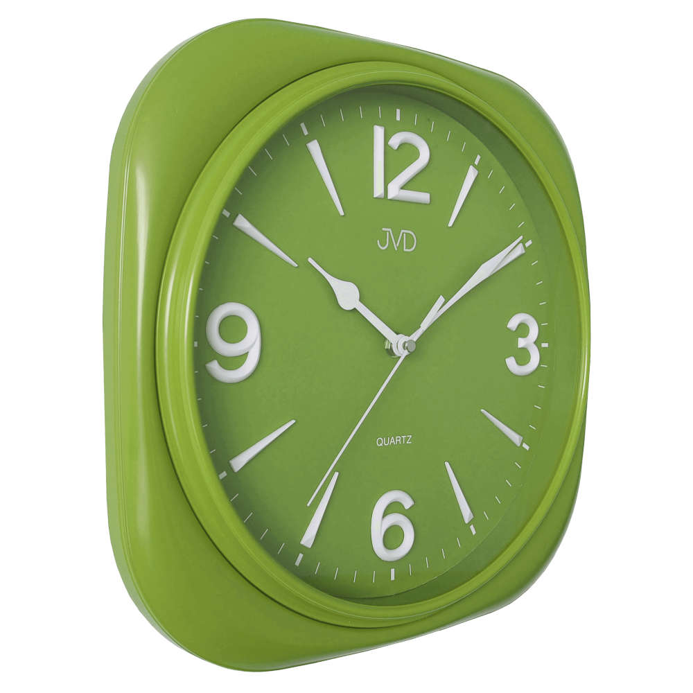 • Klok HX2444-2J is een wandklok in een groene kunststof uitvoering met witte opgelegde cijfers en urenmarkeringen en witte wijzers.