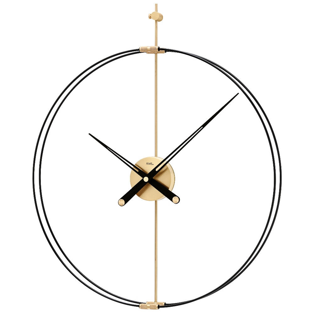 • Klok 9655 is een grote metaal-carbon design wandklok bestaande uit twee zwart gelakte metalen ringen die zijn verbonden middels de messing staaf die door het midden van de klok loopt.