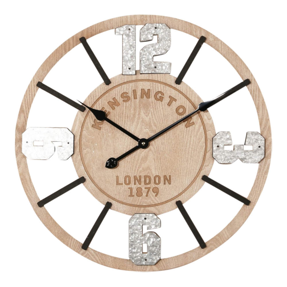 • Met opgelegde zwarte houten urenmarkeringen en zink metalen cijfers.