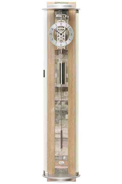 • Klok 2724 is een snaarregulateur in een zilver gekleurde uitvoering met een gebogen mineraalglas en een sonoma eikenhouten achterwand die is ingelegd met natuursteen elementen.
