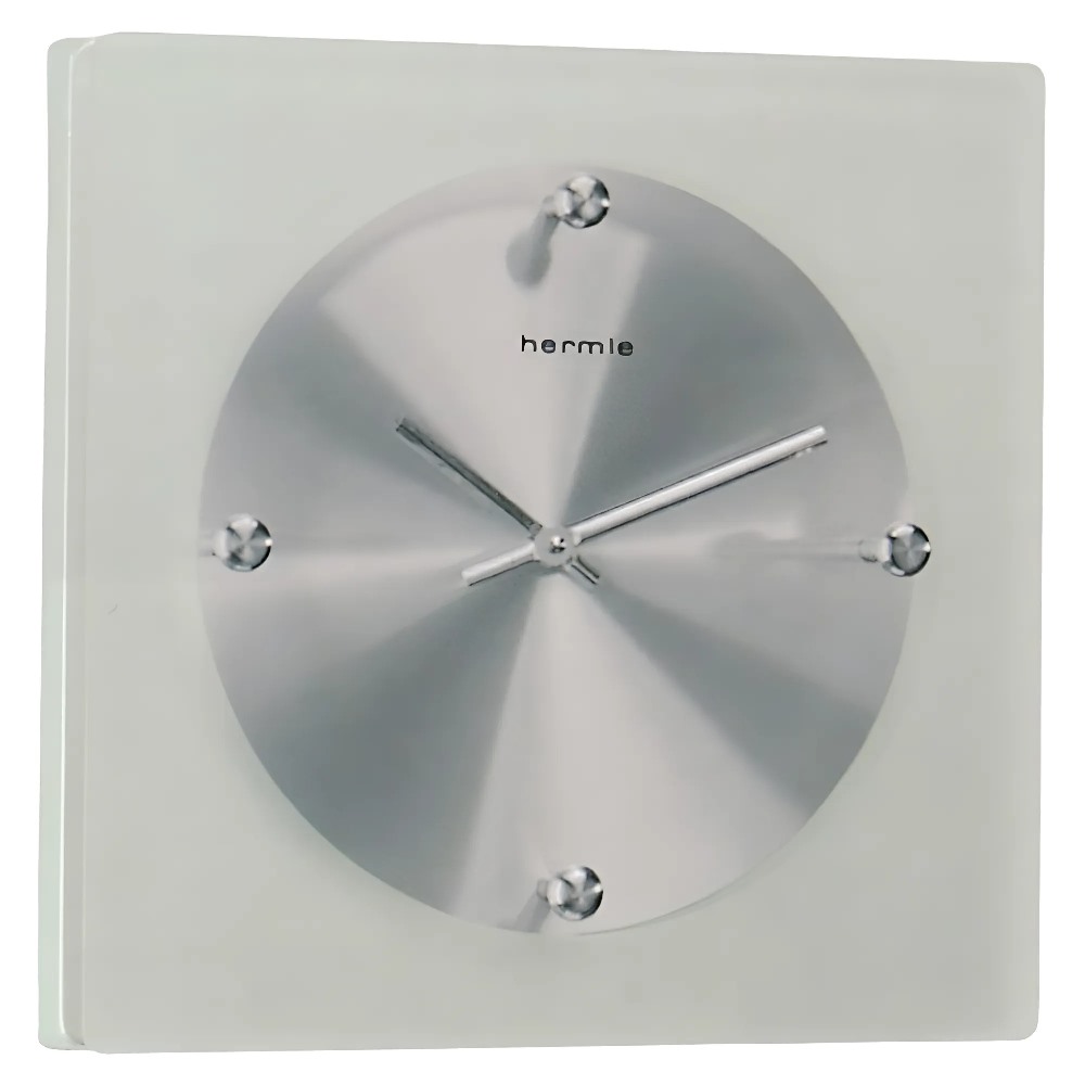 • Klok 30761-002100 is een design wandklok met een gematteerde metalen achterplaat en verhoogde zilverkleurige metalen pilaren.