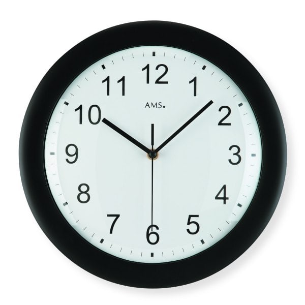 • Klok 5935 is een wandklok met een zwarte kunststof rand en een mineraalglas voor de wijzerplaat.