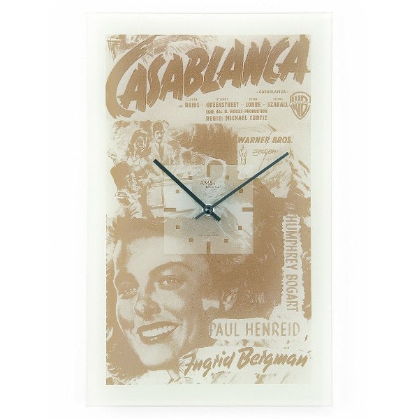 • Klok 9222 is een wandklok van bedrukt mineraalglas met poster van de film Casablanca.
