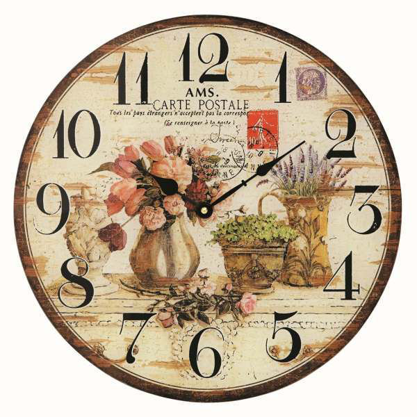 • Klok 9466 is een wandklok van bedrukt mineraalglas met een bloemen design.