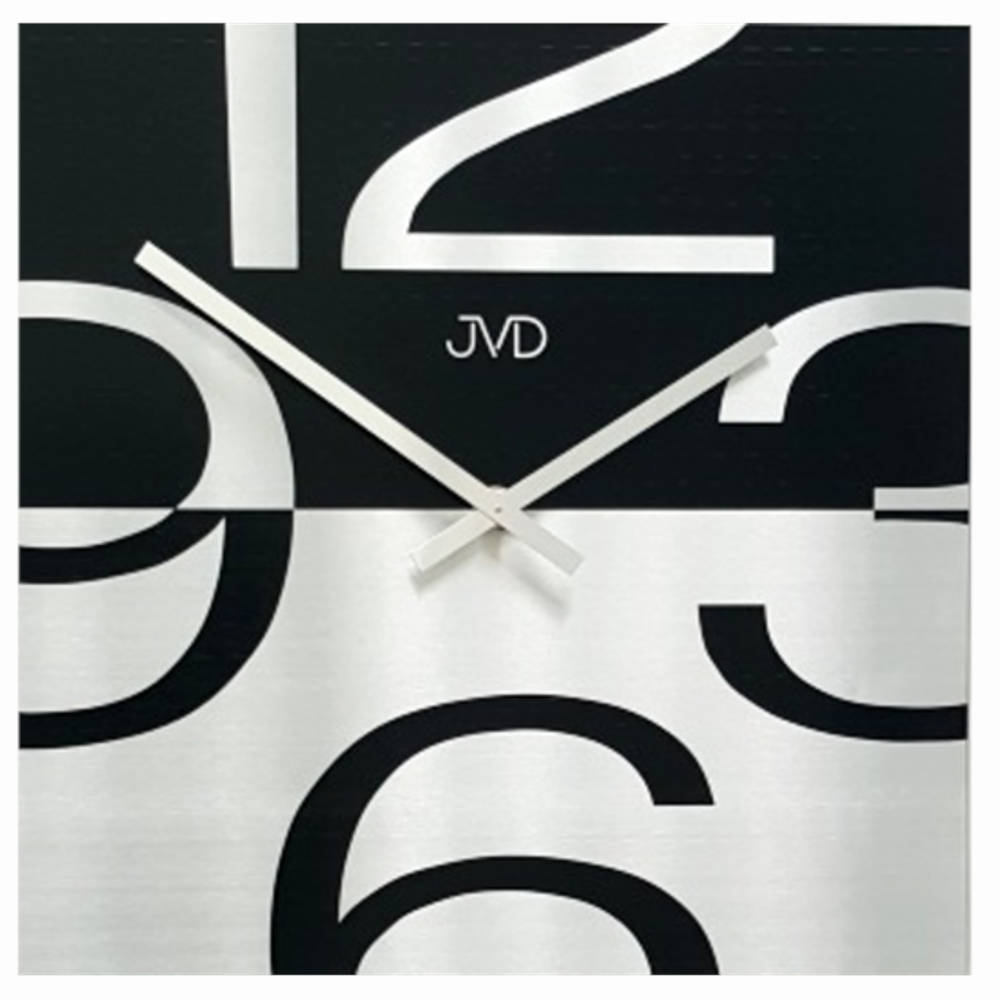 • Klok HC24J is een vierkante wandklok van hout opgelegd met zwart gespoten aluminium en mat zilverkleurig aluminium.