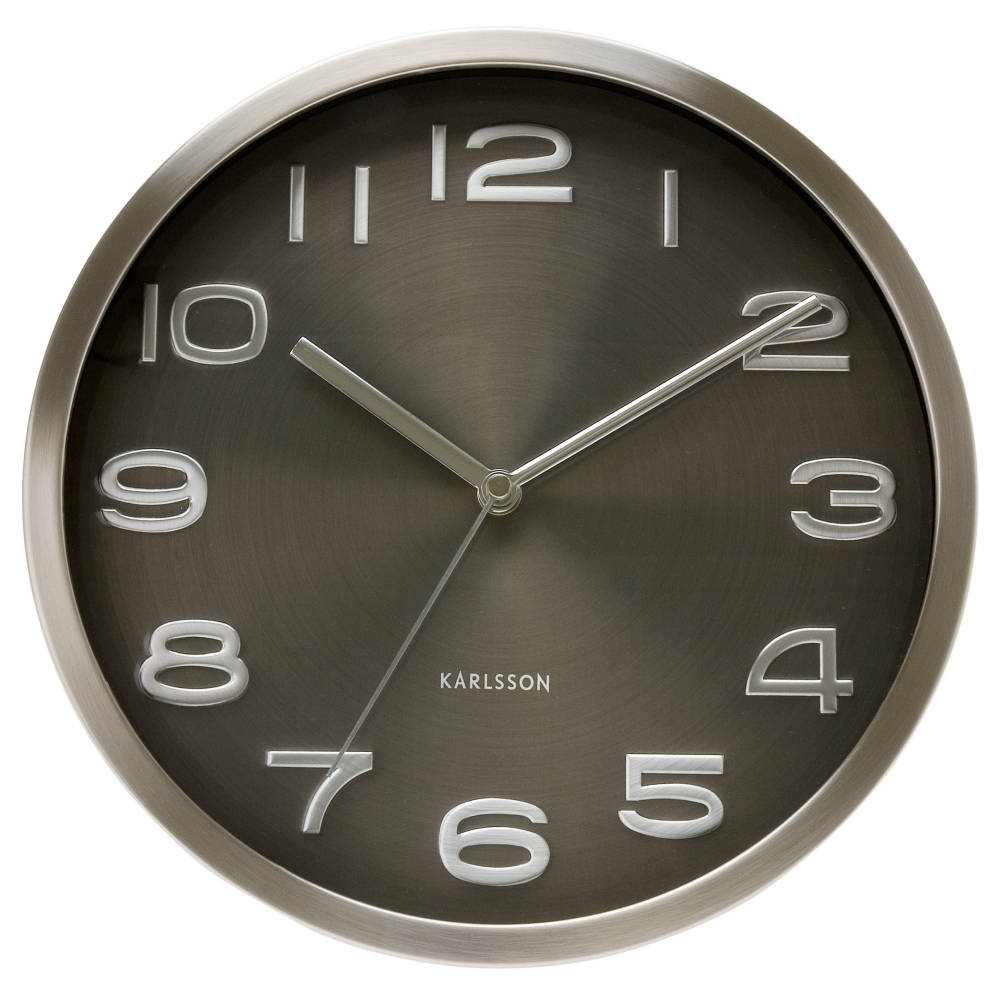 • Klok KA4461 is een wandklok met een mat zilverkleurige metalen rand en zwarte wijzerplaat.