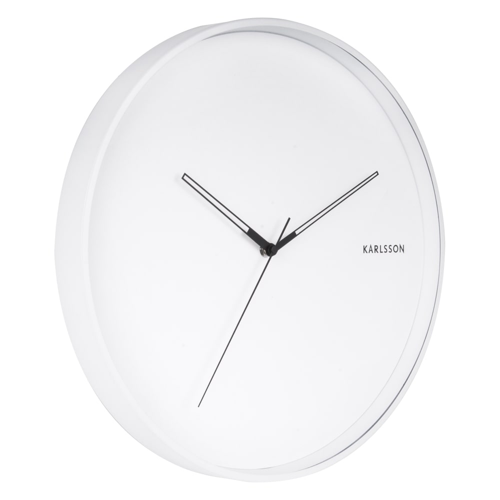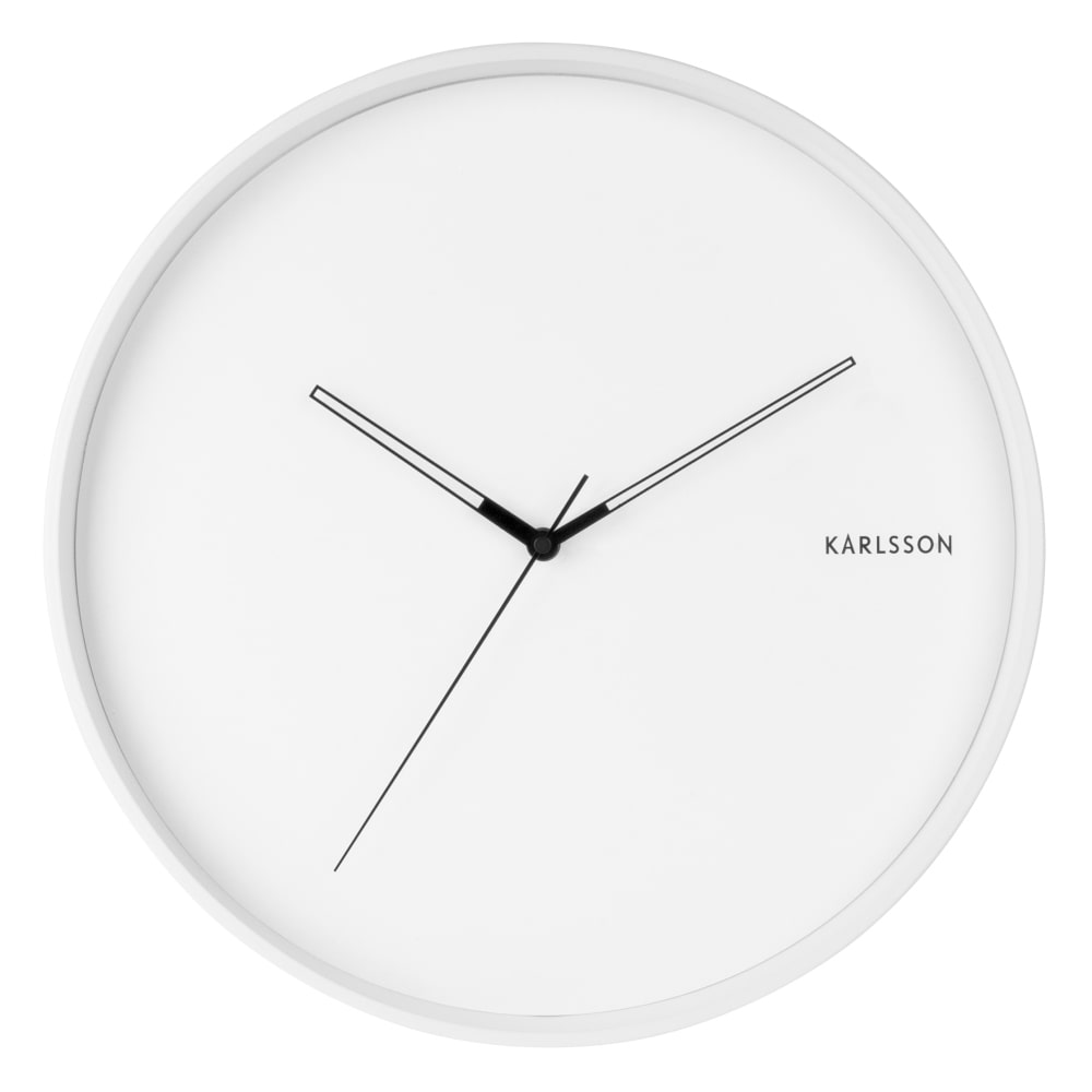 • Klok KA5807WH is een wandklok in een witte uitvoering met een mat witte metalen rand en zwarte metalen open wijzers.