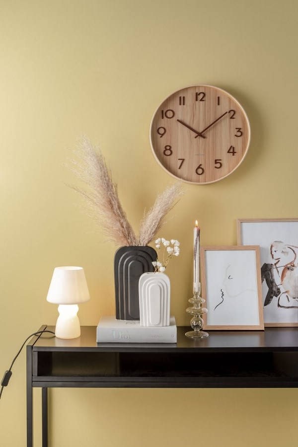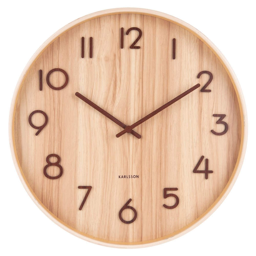 • Klok KA5809WD is een wandklok in een lindehouten uitvoering met houten opgelegde cijfers en houten wijzers.