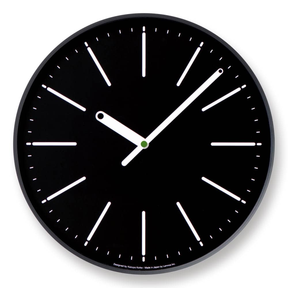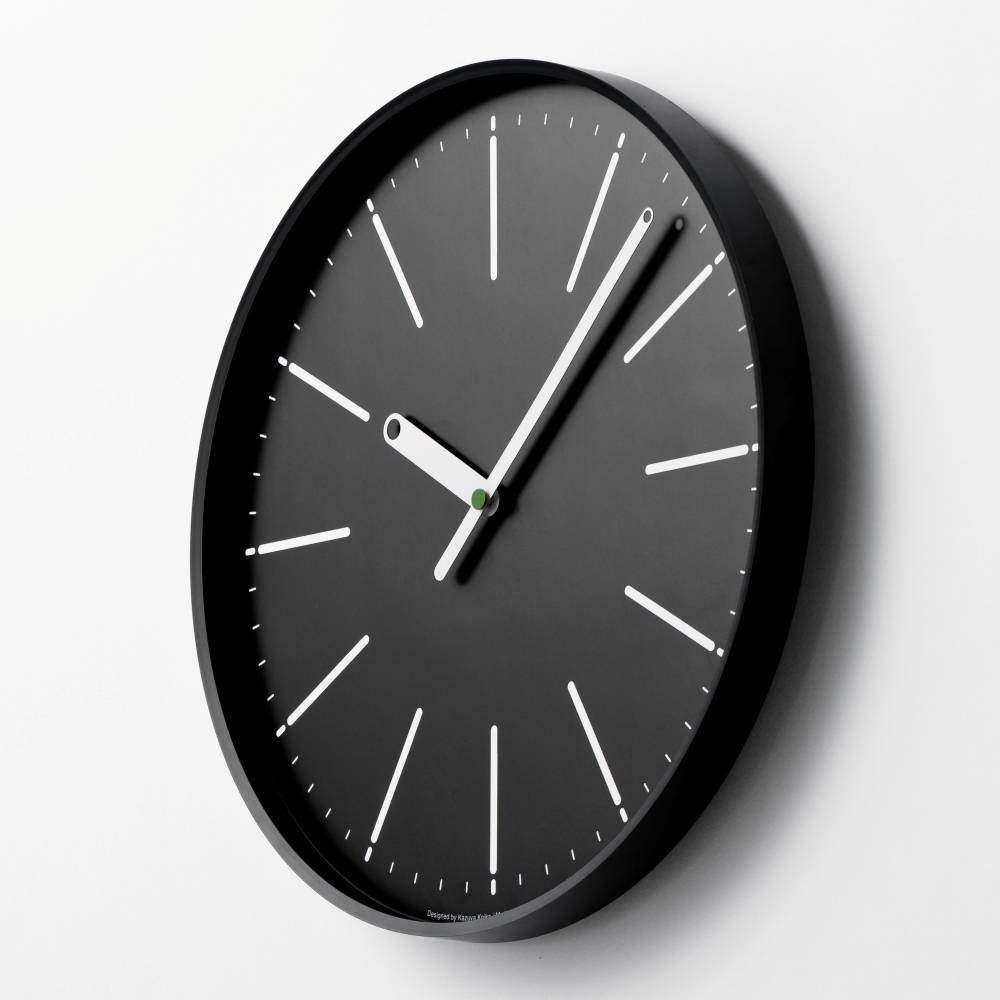 • Klok KK15-13BK is een design wandklok in een zwarte kunststof uitvoering met witte opgedrukte strepen en een mineraalglas voor de wijzerplaat.