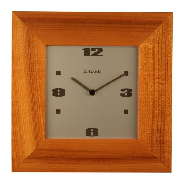 • Klok 12-4044-2 is een wandklok met een massief licht kersenhouten rand en een zilver gekleurde wijzerplaat.