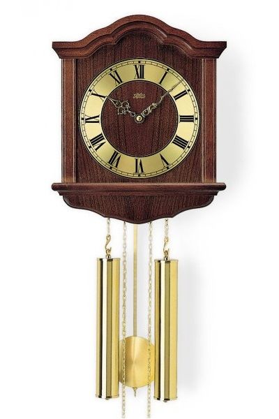 • Klok 206-1 is een wandklok in een messing gekleurde uitvoering met een notenhouten kast.