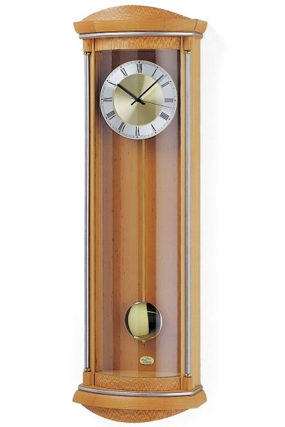 • Met een gebold mineraalglas, zilver gekleurde sierdelen en cijferrand en messing gekleurde slinger en middendeel van de wijzerplaat.