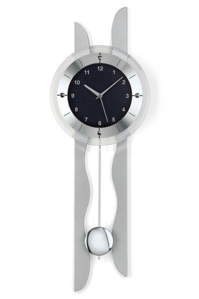 • Klok 5243 is een wandklok met een zilver gelakte houten achterwand, een zwarte wijzerplaat, geslepen aluminium en een mineraalglas met een geslepen rand.