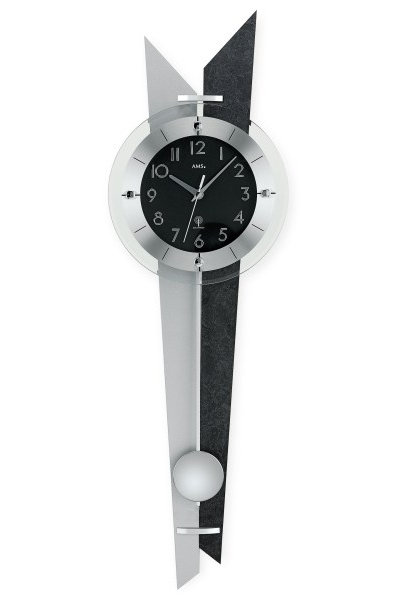 • Klok 5253 is een wandklok met een achterwand van zilver gelakt hout en een leisteen motief, geslepen aluminium delen en een mineraalglas met een geslepen rand voor de zwarte wijzerplaat.