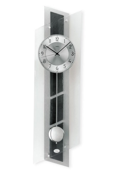 • Klok 7217 is een wandklok met een achterwand van geslepen aluminium en echt leisteen, gebogen mineraalglas en een aluminium wijzerplaat.