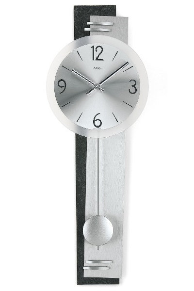 • Klok 7255 is een wandklok met een leisteen motief achterwand en gematteerd aluminium waarop geslepen aluminium delen zijn opgelegd.