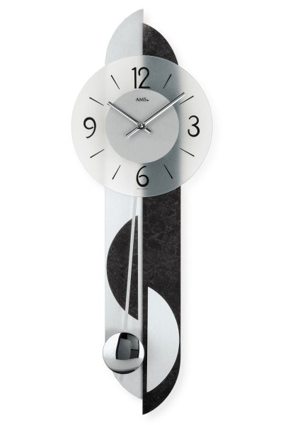 • Klok 7299 is een wandklok met een leisteen motief en geslepen aluminium op de achterwand, de wijzerplaat is van gematteerd mineraalglas.