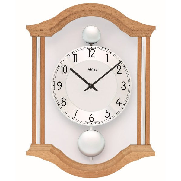 • Klok 7447-18 is een wandklok van massief beukenhout met zilverkleurige sierdelen, mineraalglas en een aluminium wijzerplaat.