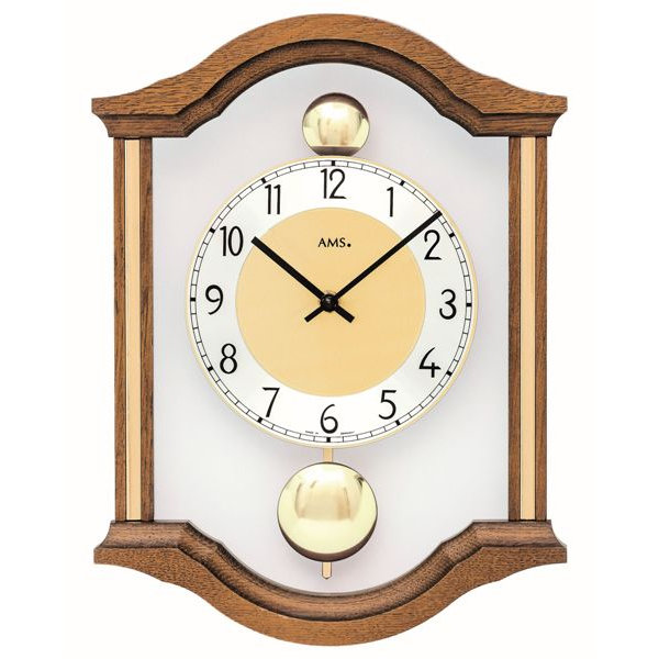 • Klok 7447-4 is een wandklok van massief midden eikenhout met messingkleurige sierdelen, mineraalglas en een aluminium cijferrand.