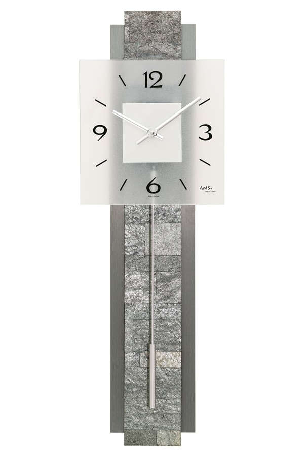 • Klok 7472 is een wandklok met een houten achterwand die is opgelegd met gematteerd antraciet gekleurd aluminium en natuurstenen.