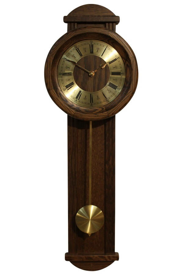• Klok BS1DE is een wandklok in een massief donker eikenhouten uitvoering met messing slinger, wijzerplaat en wijzers.