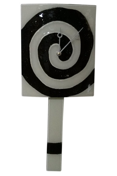• Klok OICS1923 is een handgemaakte wandklok van glas met een zwart-wit kunstdesign.