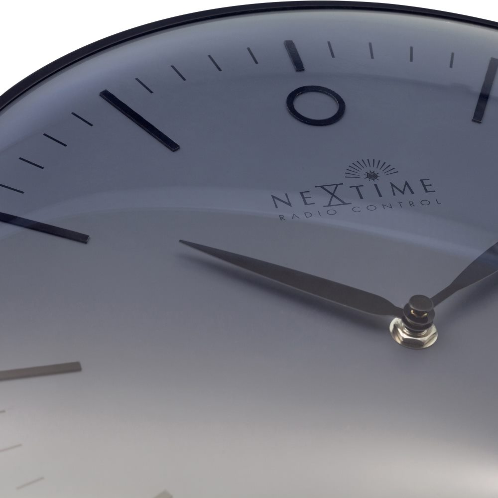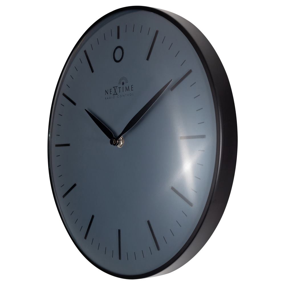 • Klok NE3256ZWRC is een wandklok met een mat zwarte metalen rand, gebold mineraalglas en grijze wijzerplaat met opgedrukte zwarte urenmarkeringen.