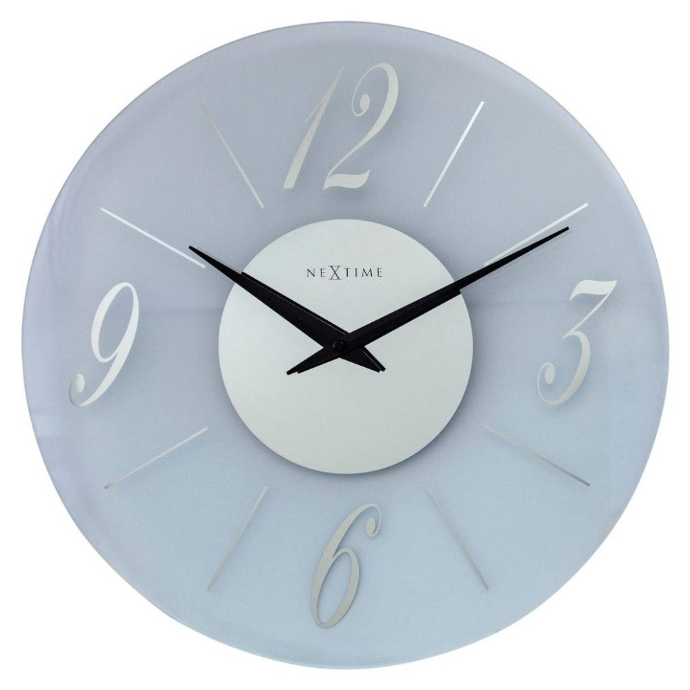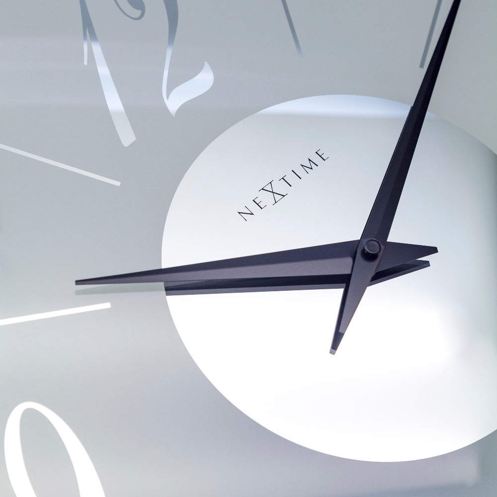• Klok NE3304FR is een wandklok van mat glas met een geslepen rand en spiegelende cijfers en middendeel.