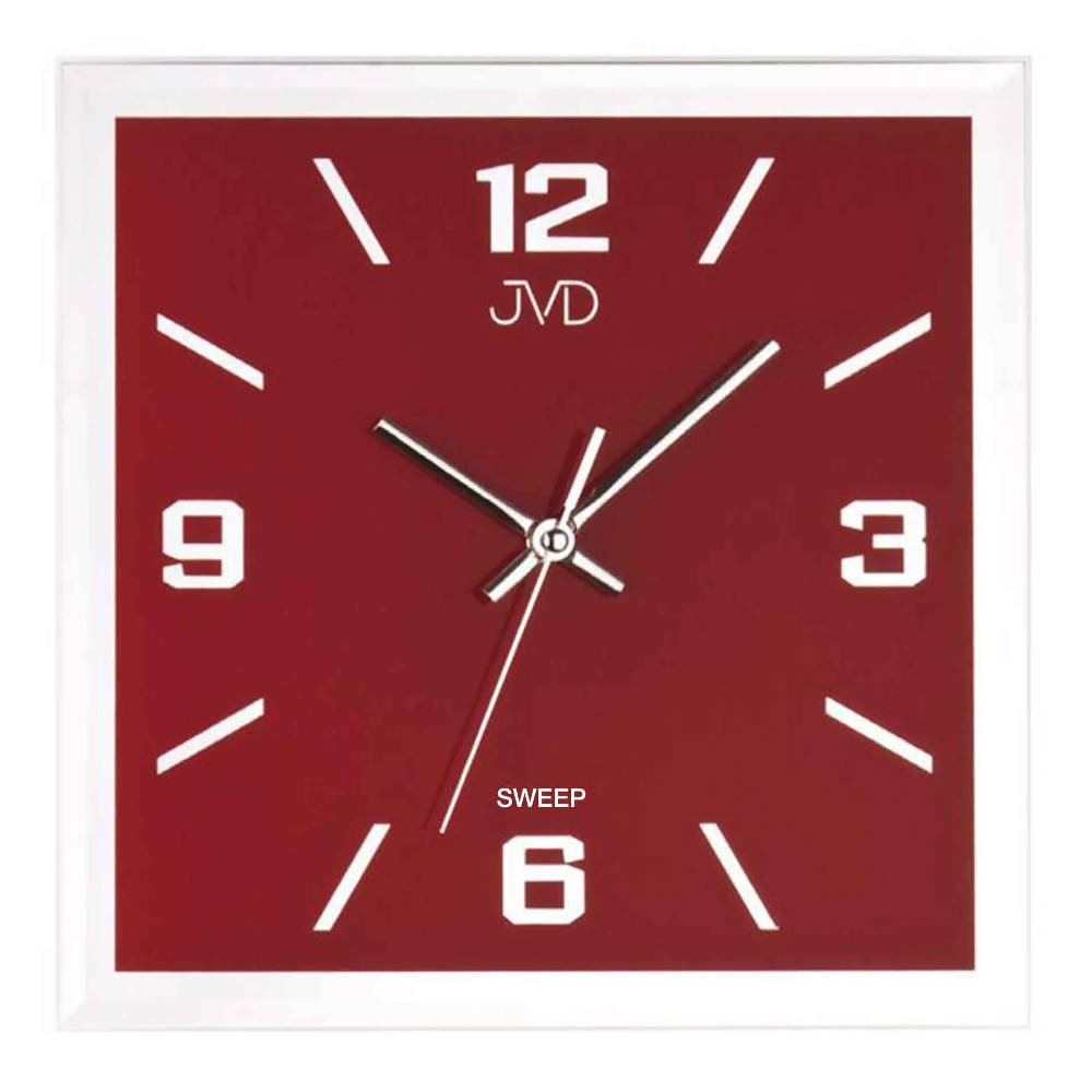 • Klok NS26113-8J is een vierkante wandklok in een rood bedrukte spiegelglas uitvoering met zilverkleurige wijzers.