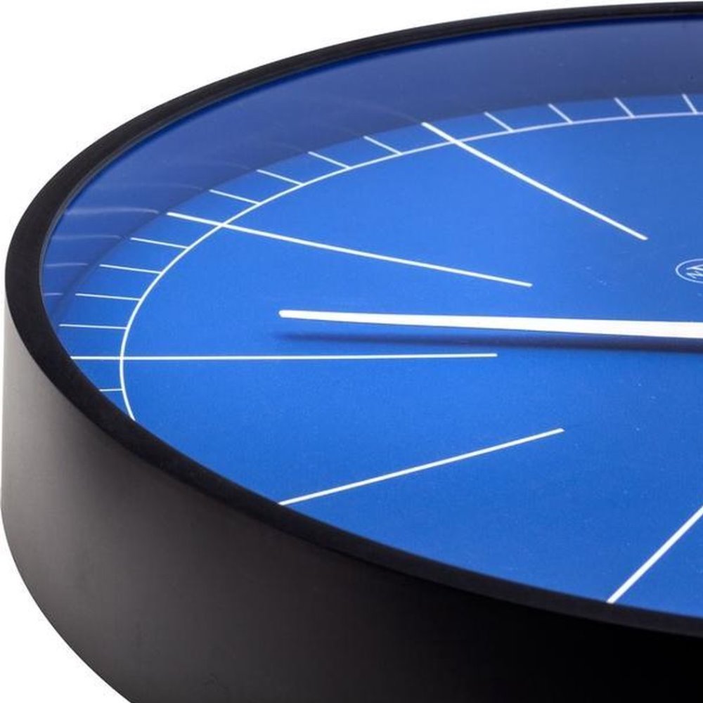 • Klok NX7328BL is een wandklok met een zwarte kunststof rand en blauwe wijzerplaat die is opgedrukt met witte urenmarkeringen.