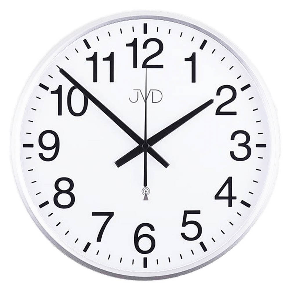 • Klok RH684-4J is een wandklok met een witte kunststof rand en een vlak mineraalglas voor de wijzerplaat.
