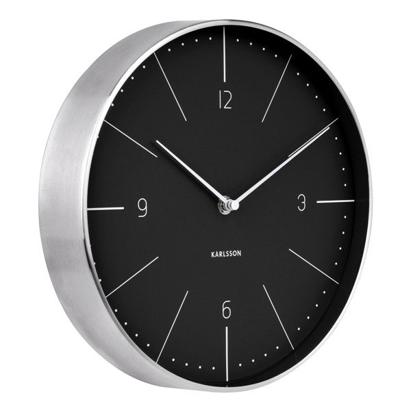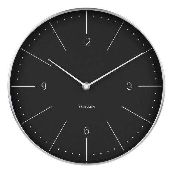 • Klok KA5682BK is een wandklok met een gematteerde stalen zilverkleurige rand, witte wijzers en een mineraalglas voor de zwarte wijzerplaat.
