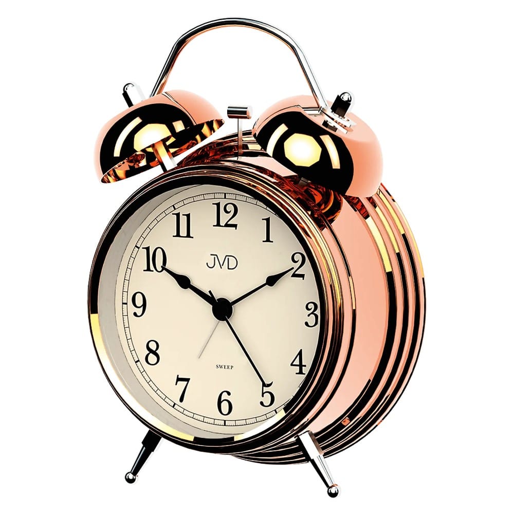 • Wekker SRP2217-3J is een bellenwekker in een glanzend koper kleurige metalen uitvoering met mineraalglas voor de crème kleurige wijzerplaat.