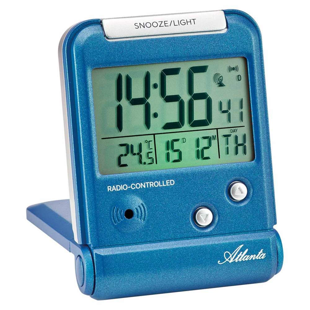 • Wekker 1806-5A is een digitale reiswekker in een blauwe kunststof uitvoering met weergave van tijd, datum, temperatuur en dagweergave in het Engels.